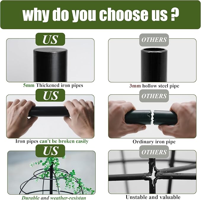- Stunning Aesthetic Appeal: The GOOOXIM Obelisk Trellis showcases a unique, patented design featuring a captivating three-layer sphere structure combined with a sleek obelisk shape. Crafted from premium black metal, it effortlessly elevates the artistic ambiance of your garden or home decor.