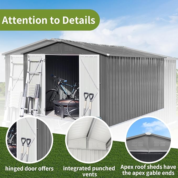 12x10FT Heavy-Duty Metal Storage Shed, Extra-Large Outdoor Shed with Apex Roof, Steel Vents & Hinged Door, Includes Free Padlock for Secure Tool & Equipment Storage (Easy Assembly)