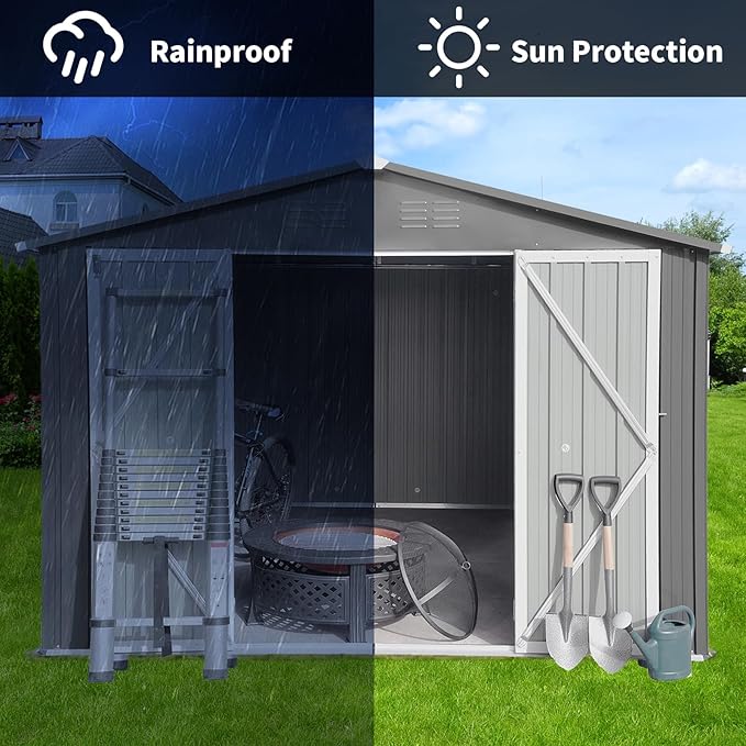 - All-Season Durability – Apex roof sheds rain/snow fast, while galvanized steel panels stand strong against sun, wind, and time.