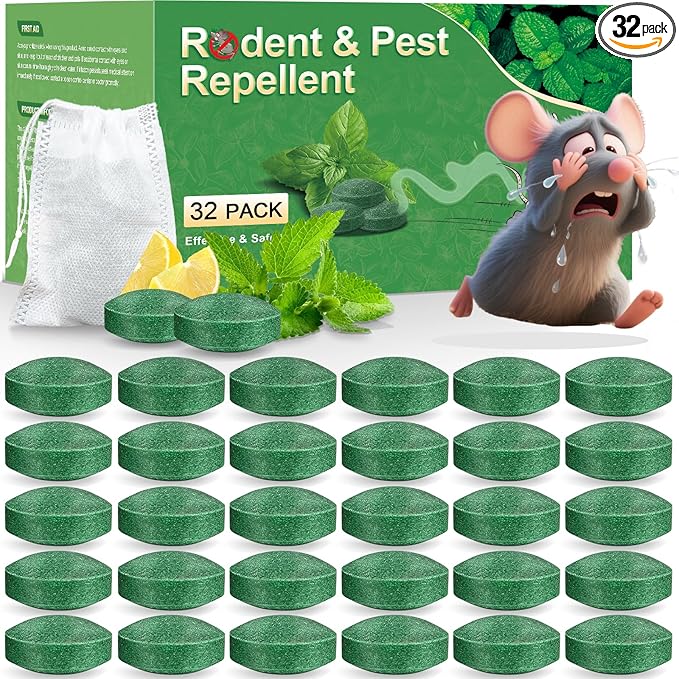 Mouse Rodent Repellent, 32 Pack Peppermint Oil Mice Repellent for Mice, Rats, Spiders, Squirrels and Pests, Indoor & Outdoor Natural Mouse Deterrent, Keep Rodents Away from Garden & Home (Mint)