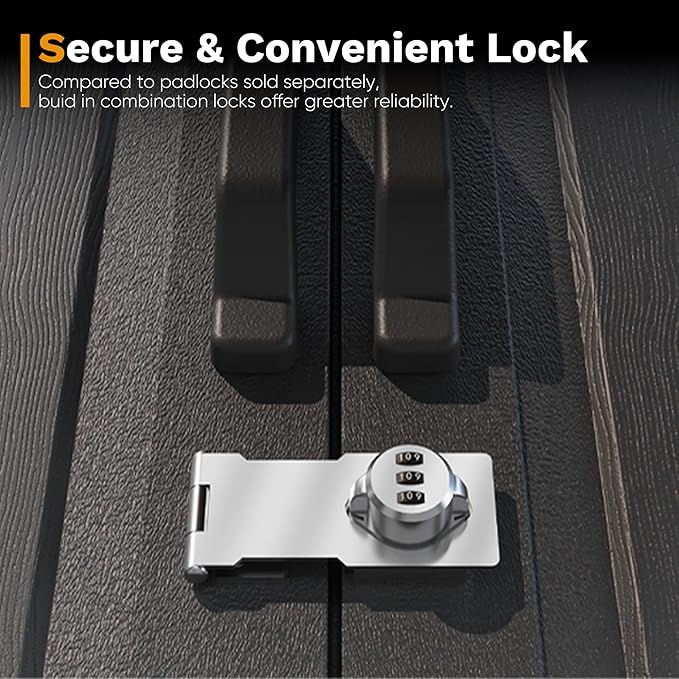 - KICK-IT Installation : Approximately 35% fewer screws are required, the wall of resin shed connected to the floor only needs to be aligned and installed by kicking with feet to complete the installation. Before installation, make sure the ground is level.