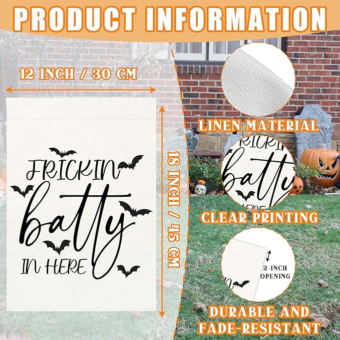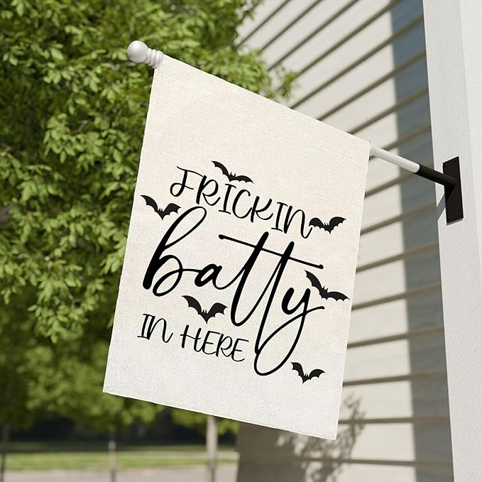 Frickin Batty in Here Halloween Garden Flag for Outside, 12x18 Inch Double Sided Bats Yard Flag, Farmhouse Small Yard Flags for Outdoor Decorations, Holiday Decor Gifts-A14