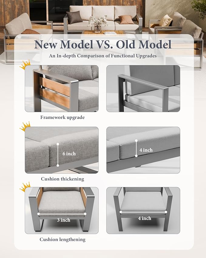 - 【EASY ASSEMBLE & RELIABLE SUPPORT】This patio set is easy to set up, simple tool-free assembly, clear online video instructions and intuitively numbered parts. The set comes delivered in 4 boxes, they may not arrive together, so be patient to wait that please. If you have any issues like missing parts or damage, please get in touch with us for assistance. 24/7 customer service that provides prompt solutions to ensure your complete satisfaction.