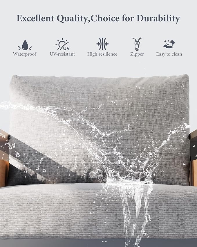 - 【5.5" Removable & Machine-washable Seat Cushion】 This outdoor furniture's cushion covers are removable and machine-washable, making cleaning effortless and keeping your set looking like new. Seat cushion of the set comes with high-density sponge, better for upper-body support, cushions are designed to be stable, keeping them from sliding around.