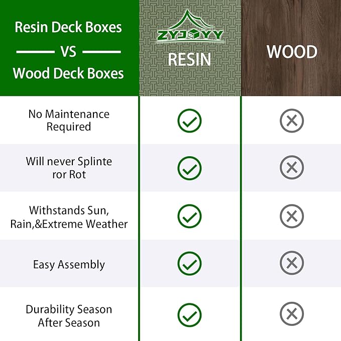 - Durable Resin Construction: Made from high-quality resin, this outdoor storage box is built to last. Itβs weather-resistant, waterproof, and UV-protected, making it ideal for use as a cushion storage box for patio, deck storage box, or outdoor storage bin. Perfect for all your outdoor tool storage and furniture needs.