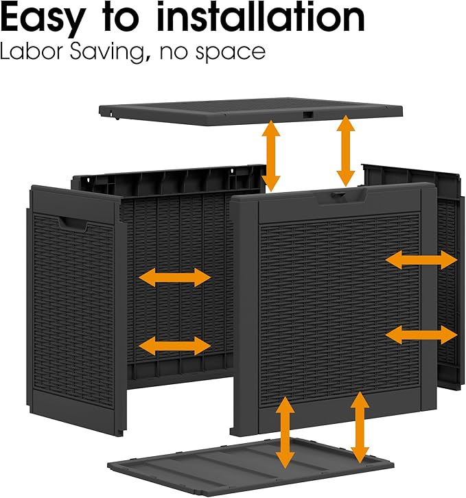 - Stylish design: Featuring a modern pattern design, this all-weather resin deck box adds a touch of elegance to your patio, garden, porch, or poolside. It serves as both a practical storage solution and a beautiful decorative piece.