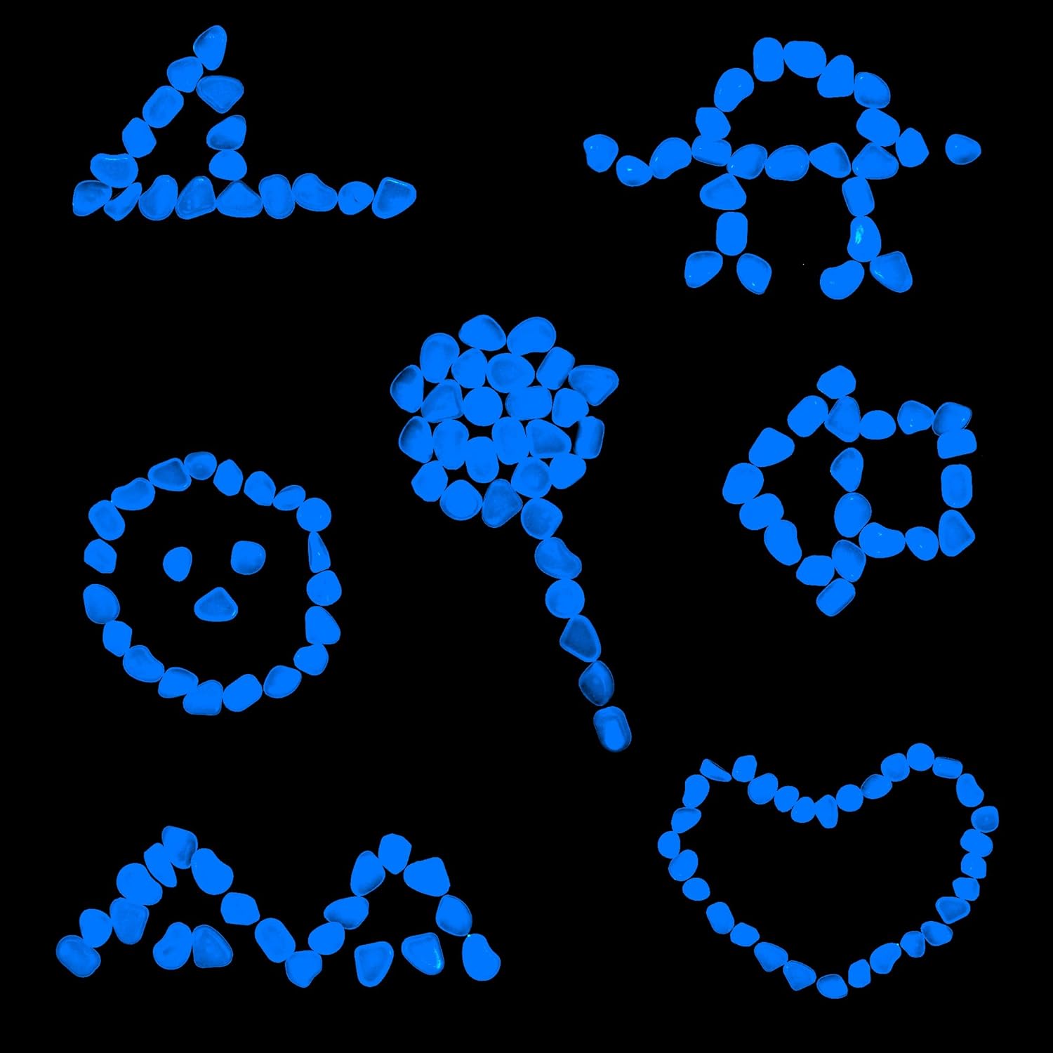 - Transform Your Outdoor Space: Transform your outdoor space into a captivating wonderland with our glowing rocks! Designed for versatility and visual appeal, these glow in the dark gravels illuminate your garden pathways, flower beds, and landscapes with a beautiful glow that captivates both day and night