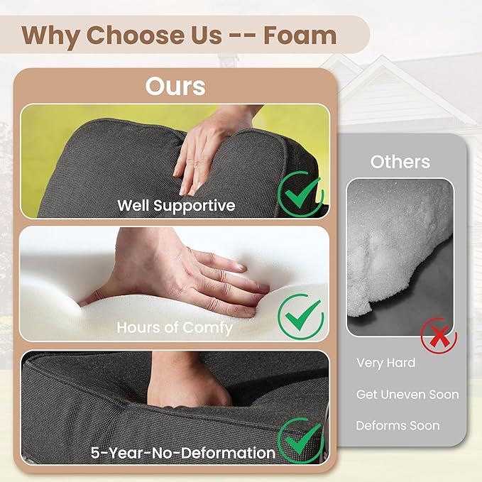 - Texture Woven Fabric: Cushions are covered by yarn dyed woven fabric,the yarns are dyed and UV treated before woven into fabric for out door fading resistant and water repellent. Looks and touches with high-end woven texture. No more worry about getting cheaply made thin print fabric. Detachable & washable