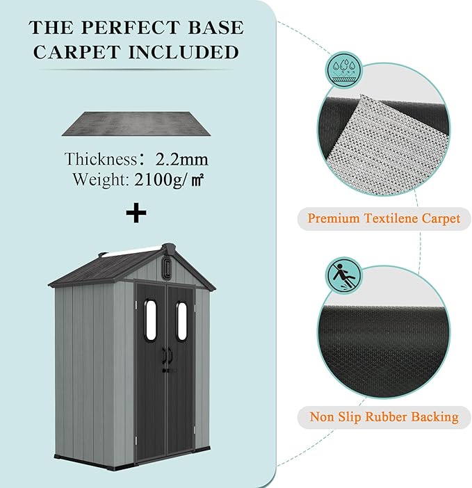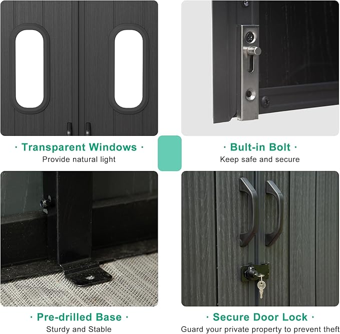 - Easy to Assemble - With clear instructions and labeled parts, this large outdoors shed assembles quickly (recommended 2-3 people). The lightweight yet sturdy resin panels make setup simpler than heavy metal sheds while offering comparable durability.
