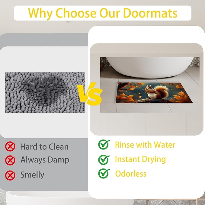 - Versatile Use: The doormat is perfect for indoor outdoor entrance,porch,hallways! And the doormat's unique design and pattern impart a pleasing aesthetic touch.Whether in the bathroom, kitchen, bedroom, laundry room, living room, garage, office, or courtyard, you can use it to add a touch of charm. It's a fantastic idea for gifting to friends and neighbors as a warming house gift.