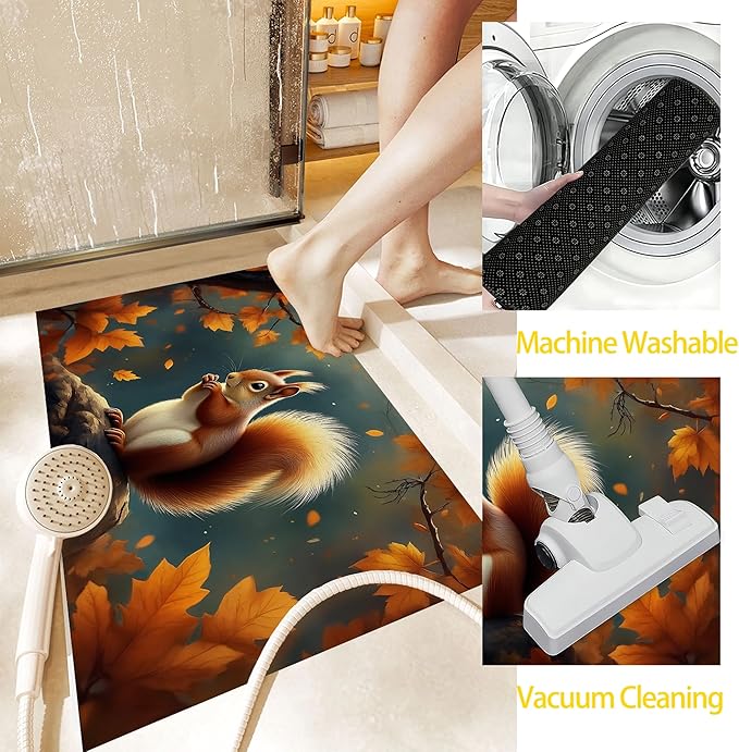 Door Mat,Cute Squirrel Welcome Mat Indoor,Fall Maple Leaf Non-Slip Outdoor Entry Mat for Home Entryway, Low Profile Floor Rugs for Entry Patio, Porch, Hallways 30 x 17 Inch