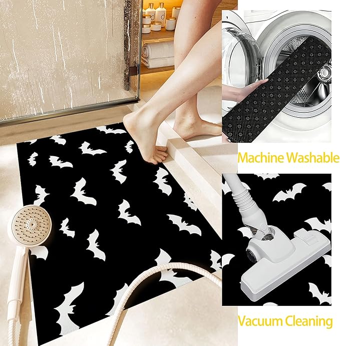 Front Door Mat,Gothic Bats Doormat Outside Entrance,Non-Slip Halloween Entryway Rug for Porch Patio, Felt Low Profile Welcome Mat Indoor for Hallways, 30 x 17 Inch