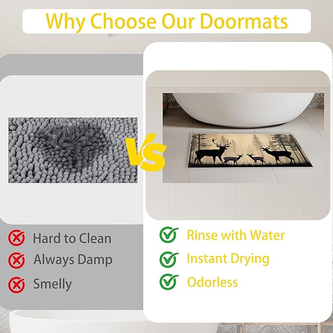 - Premium Non-Slip Rubber: Equipped with high density non-slip rubber backing, our front door mat have excellent sufficient grip that stays in place, providing just enough cushion and do not slide or flip up. Don't have to worry about tripping or sliding anymore when stepping on a mat,making it ideal for homes with pets or children