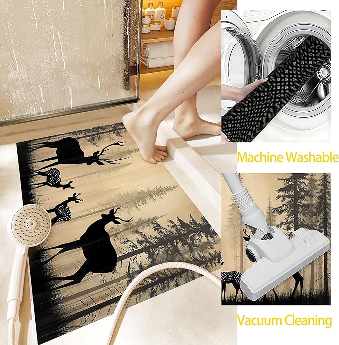 Vintage Forest Deer Family Welcome Mat Indoor,Rustic Animal Front Door Mat,Non-Slip Entryway Rug, Low Profile Felt Indoor Doormat for Back Door Porch Patio Entrance,30 x 17 Inch