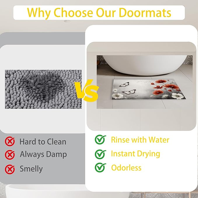 - Versatile Use: The doormat is perfect for indoor outdoor entrance,porch,hallways! And the doormat's unique design and pattern impart a pleasing aesthetic touch.Whether in the bathroom, kitchen, bedroom, laundry room, living room, garage, office, or courtyard, you can use it to add a touch of charm. It's a fantastic idea for gifting to friends and neighbors as a warming house gift.