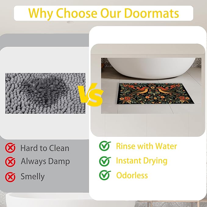 - Versatile Use: The doormat is perfect for indoor outdoor entrance,porch,hallways! And the doormat's unique design and pattern impart a pleasing aesthetic touch.Whether in the bathroom, kitchen, bedroom, laundry room, living room, garage, office, or courtyard, you can use it to add a touch of charm. It's a fantastic idea for gifting to friends and neighbors as a warming house gift.