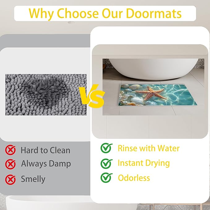 - Versatile Use: The doormat is perfect for indoor outdoor entrance,porch,hallways! And the doormat's unique design and pattern impart a pleasing aesthetic touch.Whether in the bathroom, kitchen, bedroom, laundry room, living room, garage, office, or courtyard, you can use it to add a touch of charm. It's a fantastic idea for gifting to friends and neighbors as a warming house gift.