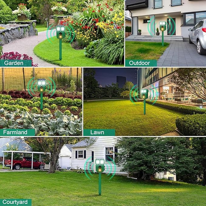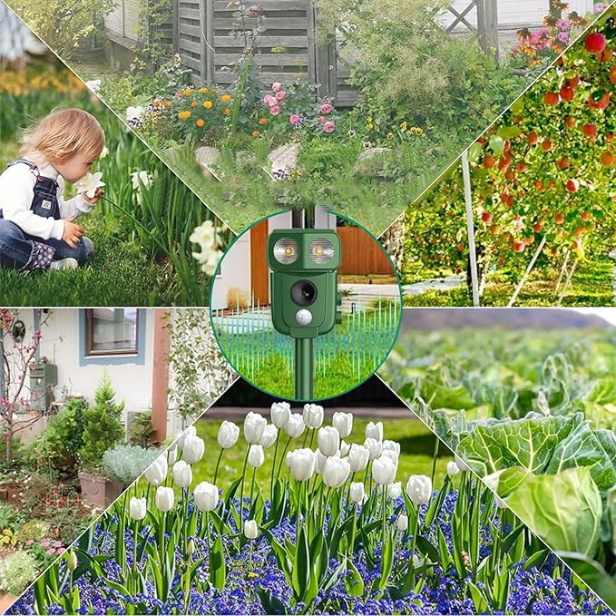 - Multi-Species Protection: Effective against rodents, rabbits, deer; ultrasonic + alarm sound ensures long-term pest control