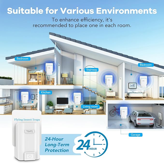 - Multipurpose Insect Trap: Perfect for various areas, including kitchens, bedrooms, bathrooms, and plant zones, providing versatile protection from flying pests(Est NO:101578-CHN-1)