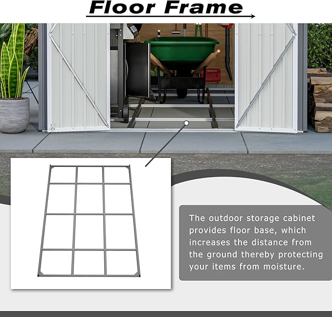 - 【Practical Design】This metal shed is equipped with a lockable door, water-shedding sloped roof,2 vents and Aluminium Frame , the outdoor storage shed provides secure storage for your belongings and increases air circulation, preventing sweltering heat in summer.