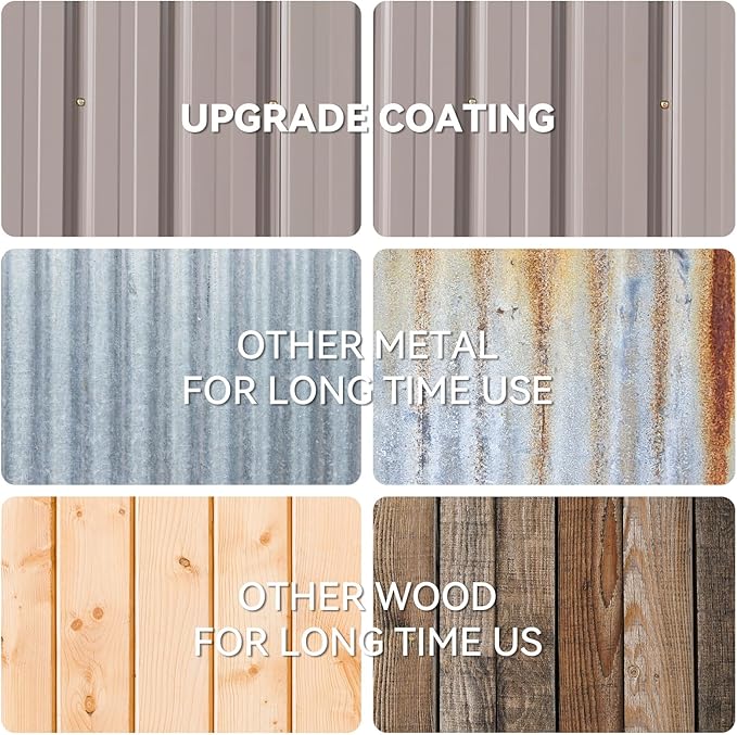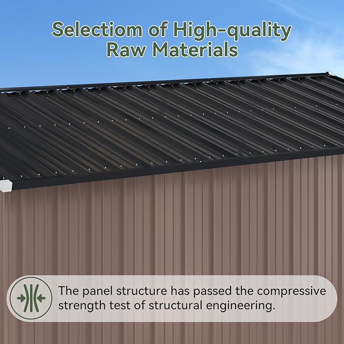 - Galvanized Steel Panels for Superior Durability: Crafted from high-strength galvanized steel, these panels are built to withstand the test of time. They effectively resist rust, ensuring long-lasting durability even in harsh outdoor conditions. Meticulously engineered for structural integrity, they offer exceptional compressive strength, providing a stable and secure storage solution for garden sheds, generator storage, and more