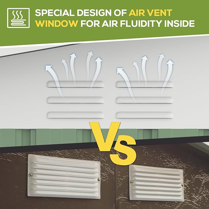 - Sturdy & Durable: Upgrades to each metal plate result in the shed weighing 73 pounds, surpassing cheaper alternatives and significantly enhancing stability. With outstanding wind resistance of approximately 54 miles per hour, it can withstand harsh weather conditions.