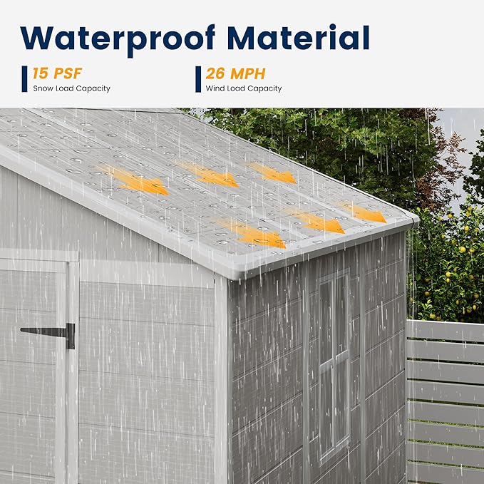- HIGH-QUALITY MATERIAL: This outdoor storage shed is made of 12mm high-quality polypropylene resin plastic. Our resin storage shed has good characteristics such as recyclability, corrosion resistance, waterproofing, and rust prevention