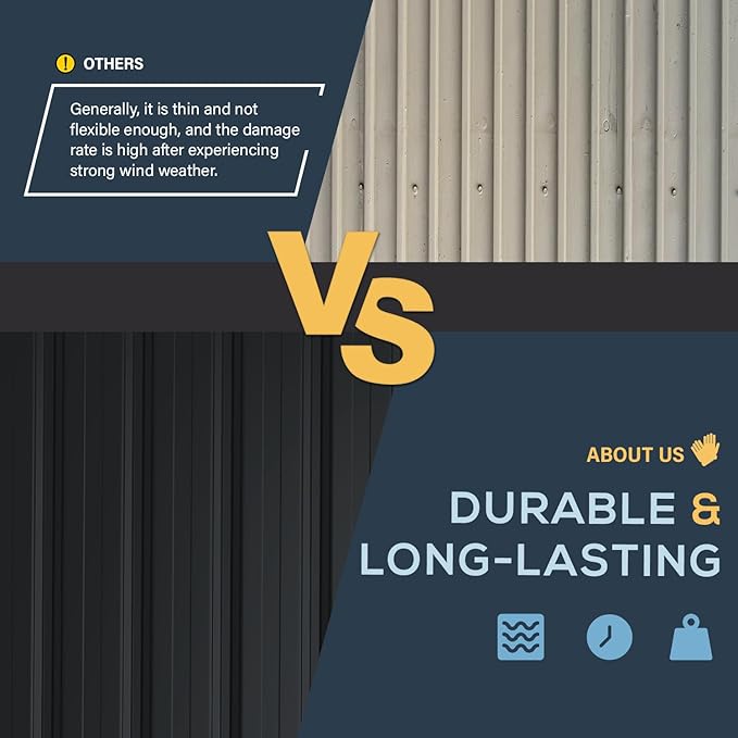 - Robust and Resilient: Enhanced metal plates contribute to the shed's weight of 250 lbs, surpassing cheaper alternatives and significantly reinforcing stability. Withstanding severe weather conditions, it exhibits exceptional wind resistance, reaching approximately 70 mph.