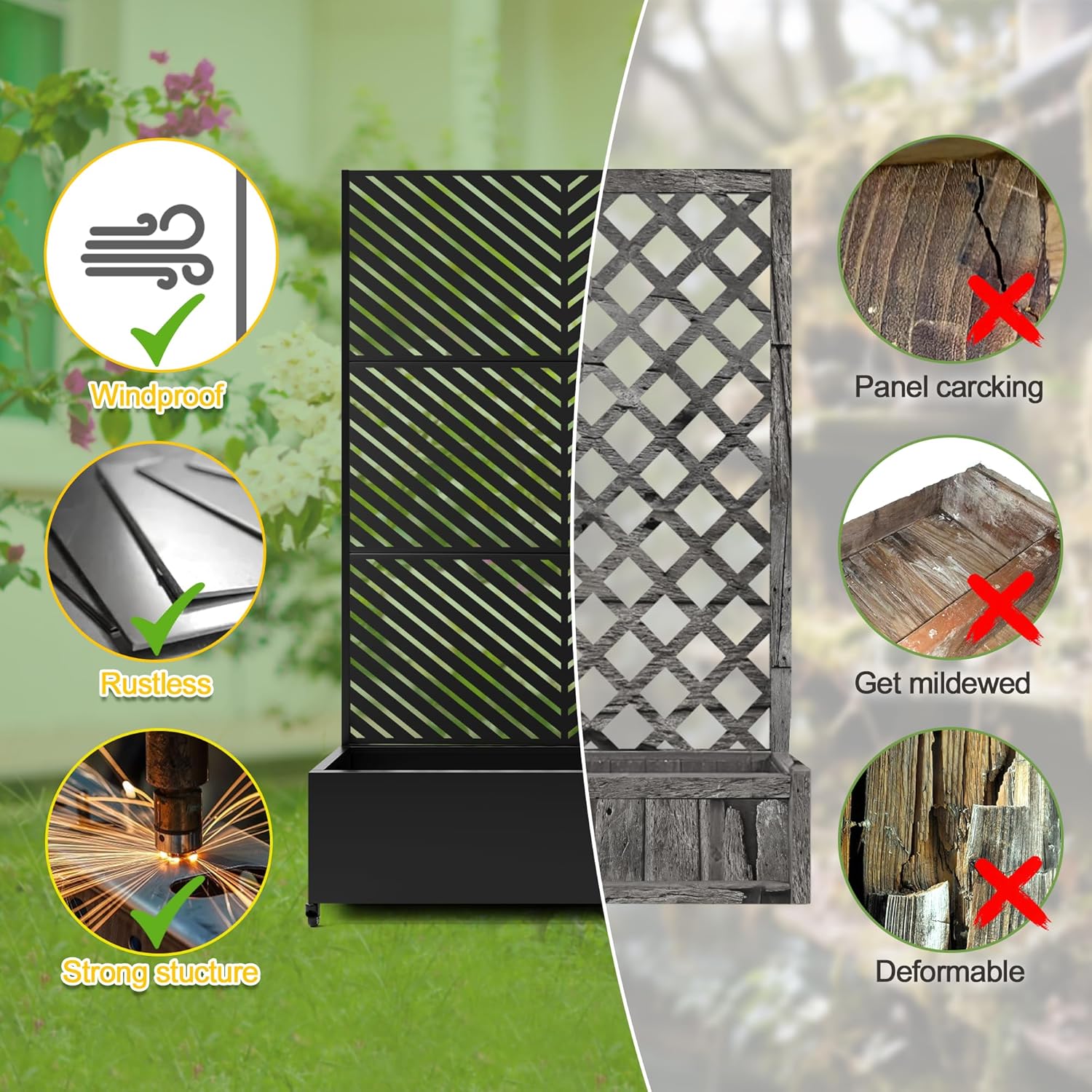 - 【Space-Saving Design】The combination of the planter box and trellis saves space while offering an attractive garden bed. This space-efficient solution is ideal for gardening enthusiasts facing space constraints, allowing them to cultivate beautiful gardens even in limited areas.