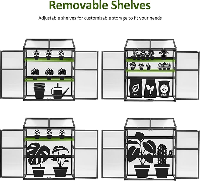 - 2 Adjustable Shelf: The shelves of this garden cold frame could be freely adjusted height to fit various types of plants, which meets all your needs