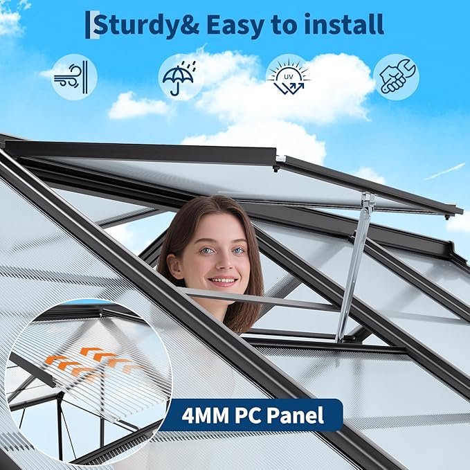 - 【40-Minute Quick Assembly】Say goodbye to tedious installation processes. Our innovative quick-install system features slide-in panels and pre-drilled components, rigorously tested over 500 times. Compared to traditional greenhouse models, it increases assembly efficiency by 40% and improves structural stability by 35%. This means you can spend less time setting it up and more time indulging in your passion for gardening.