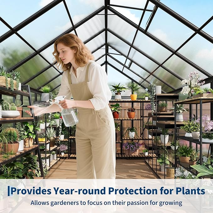 - 【40-Minute Quick Assembly】Say goodbye to tedious installation processes. Our innovative quick-install system features slide-in panels and pre-drilled components, rigorously tested over 500 times. Compared to traditional greenhouse models, it increases assembly efficiency by 40% and improves structural stability by 35%. This means you can spend less time setting it up and more time indulging in your passion for gardening.