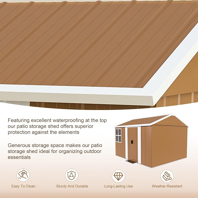 - Compact 10x8 FT Space-Saving Design - Ideal for small yards, balconies, or tight areas, this midsize shed stores lawn mowers, bicycles, tools, and patio cushions with ease—and even doubles as a protective pet house