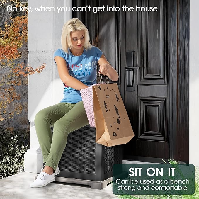 - 🏡【MULTI-FUNCTIONAL STORAGE SOLUTION】 Perfect for indoor and outdoor use: store patio cushions, pool accessories, garden tools, sports equipment, or packages. Doubles as a patio bench, side table, or storage seat for added versatility.