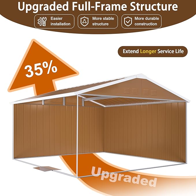 - 【Military-Grade Galvanized Steel】Manufactured using durable, rust-resistant panels with overlapping seams to enhance water resistance. An integrated UV-resistant coating provides long-lasting protection against weather elements