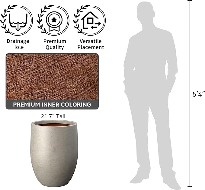 Kante 21.7 Inch Tall Concrete Planter, Large Indoor Outdoor Plant Pot with Drainage, Smooth Weathered Concrete Finish with Warm Brown Interior, Ideal for Porch, Home, Garden, Patio