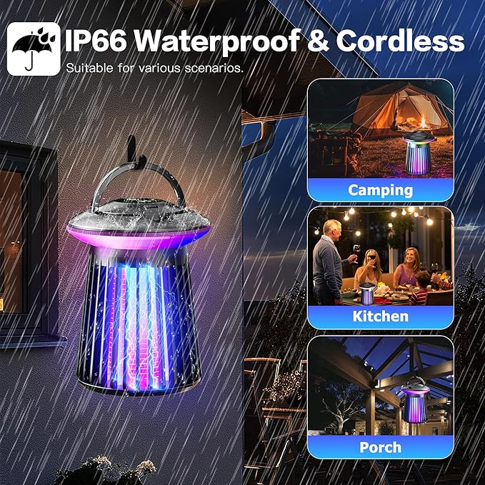 - 【2025 Upgraded Mosquito Killer Lamp – Superior Performance】The next-generation mosquito control system boosts efficiency by 30%, powered by a high-density lithium battery with USB-C fast charging support. Whether you're camping outdoors, hosting a backyard party, or facing a sudden power outage, it delivers reliable and strong power continuously.