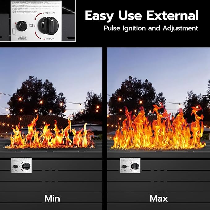 - Safe & Easy Assembly:Dual Certification for Your Safety,our fire pit is ETL certified and comes with a CSA-certified regulator. It is accompanied by a detailed manual, making its setup and use very simple. You can easily use it and enjoy it.