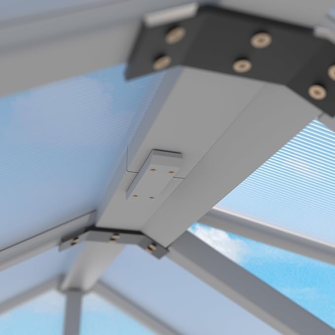 - Multi-Layer PC Panels – Constructed with multi-layered polycarbonate panels, this outdoor greenhouse offers excellent thermal insulation. The translucent panels block harmful UV rays while allowing up to 90% light transmission, giving plants the sunlight they need for strong, healthy growth.