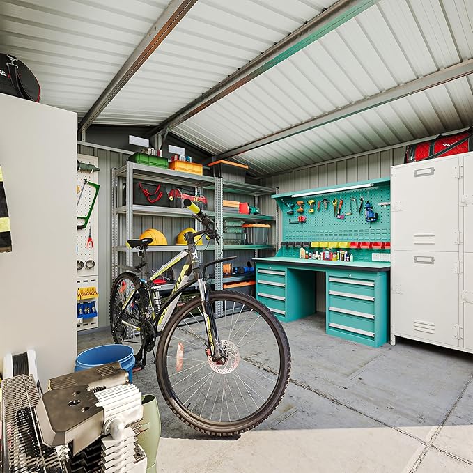 - 【Ideal Outdoor Storage Solution】Perfect for storing gardening tools, bicycles, generators, patio furniture, and more, this shed helps declutter your yard while maximizing outdoor storage efficiency. Its sleek functional design blends seamlessly into backyards, gardens, or patios. Create a tidy, organized space with this high-capacity metal storage shed built to last.