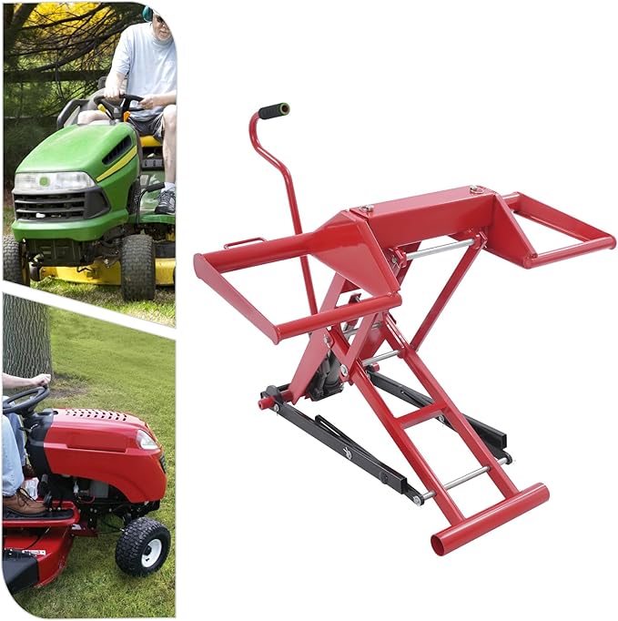 Lawn Mower Lift, 350Lbs Lawn Mower Lift Carbon Steel Hydraulic Lift Jack Lawnmower Lift Tool Adjustable Lawnmower Lifts w/Hydraulic Foot Pedal for Garden Tractors All-Terrain Maintenance and Repair