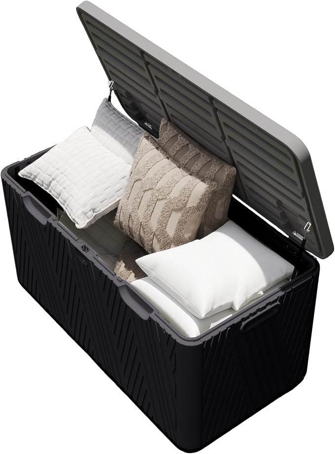 - DURABLE WATERPROOF & FADE-RESISTANT DESIGN - Constructed from premium, eco-friendly resin, this storage box is built to withstand the elements. Its waterproof and UV-resistant properties ensure that it remains vibrant and intact, even after prolonged exposure to sun and rain.