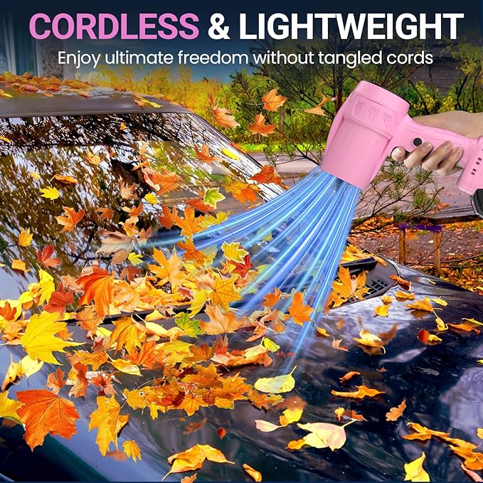 - ๐ Powerful Cordless Performance -- Driven by a high-speed 500,000RPM motor, this electric leaf blower offers robust airflow for clearing leaves, dust, and debris quicklyโno cords, no limits.