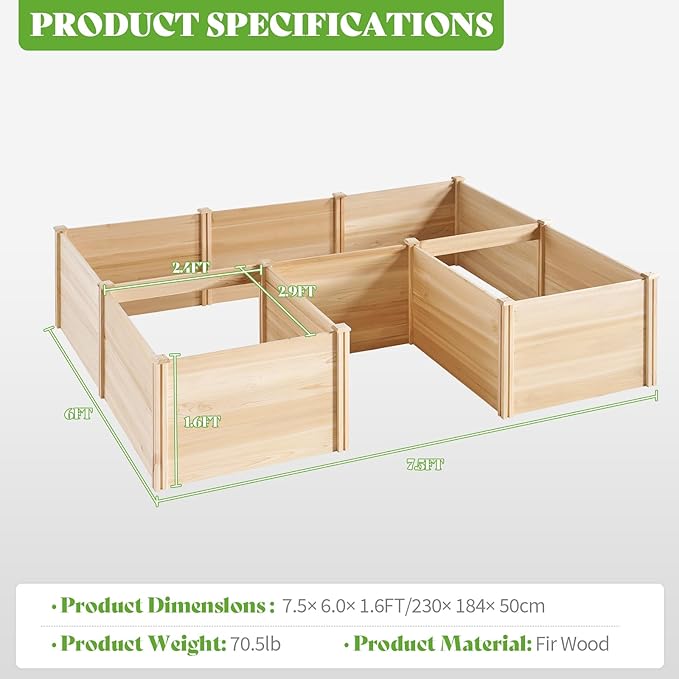 - 【Durable and Sturdy】 Built from premium fir wood, the raised planter naturally resists rot and delivers durability and stability for long-term outdoor gardening use.