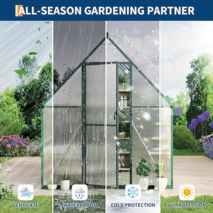 - Versatile for All Seasons & Quick Setup Structure - These backyard friendly structures are perfect for cultivating a variety of vegetables, plants, and herbs, with ample space for gardening tasks. Designed for simplicity with a quick install system and slide in panels, our greenhouse, which has been perfected through over 500 tests, boosts setup speed by 40% and enhances stability by 35%. This polycarbonate greenhouse for outdoors features a simplified assembly process with innovative quick conn