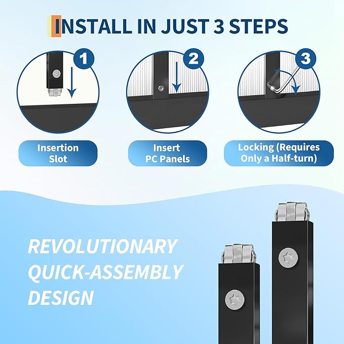 - Versatile for All Seasons & Quick Setup Structure - These backyard friendly structures are perfect for cultivating a variety of vegetables, plants, and herbs, with ample space for gardening tasks. Designed for simplicity with a quick install system and slide in panels, our greenhouse, which has been perfected through over 500 tests, boosts setup speed by 40% and enhances stability by 35%. This polycarbonate greenhouse for outdoors features a simplified assembly process with innovative quick conn