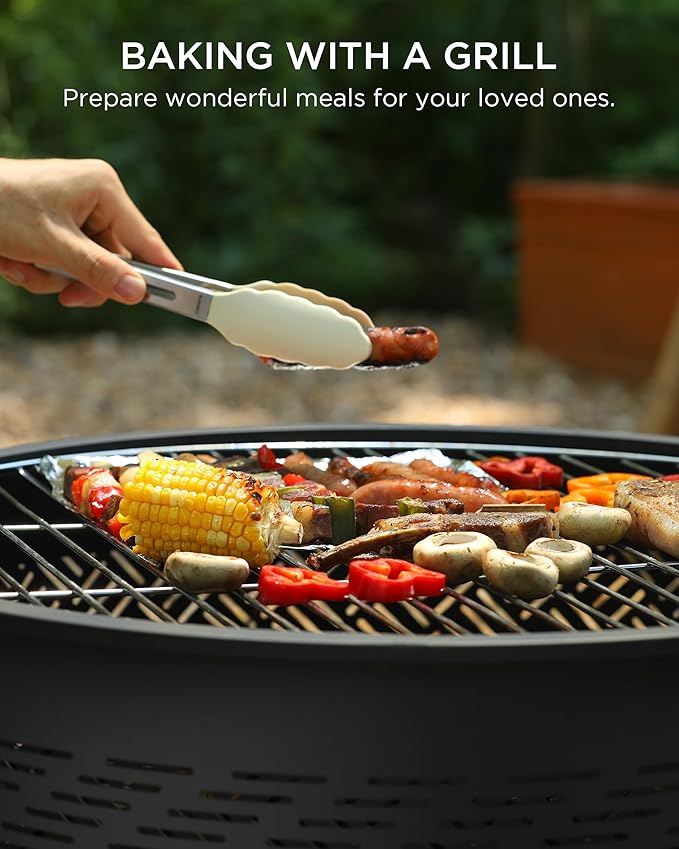 - 【Three IN One】Two pieces of equipment come with the 32-inch fire pit: a cooking grill, a lid and one poker. You can enjoy the roast and bonfire by fixing the grill to the fire pit. This 32-inch round table can seat 6 to 8 people for meals or coffee when it doesn't make fire and cover the lid. With three uses(bonfire, barbecue, and table) for your garden, patio, or yard that you can use all year round.