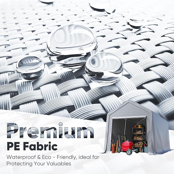 - 【Multiple Uses】This garden shed is perfect for storing motorcycles, lawn mowers, outdoor chairs, large umbrellas, bikes, skateboards, trash cans, children's toys, generators and other items.