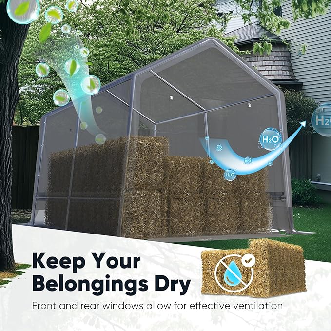 - 【Roll-up Ventilation Windows Design】There are 1 mesh roll-up windows on each door + ceiling airflow channel prevent condensation buildup. ideal for storage Lawn mower and other tools.