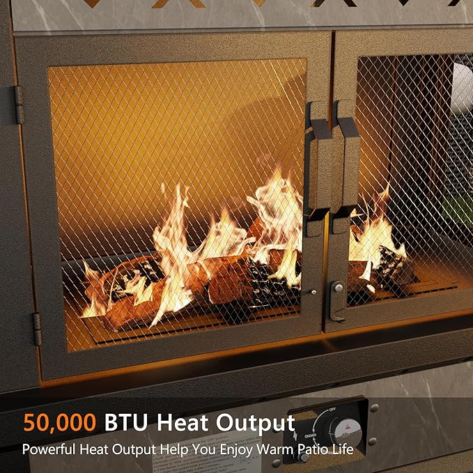 47.3''x35.5'' Outdoor Propane Fireplace, 50,000 BTU Vent-Free Gas Heater, CSA Certified Grey & Black Weather-Resistant Steel, Realistic Ceramic Logs, Rain Cover Included